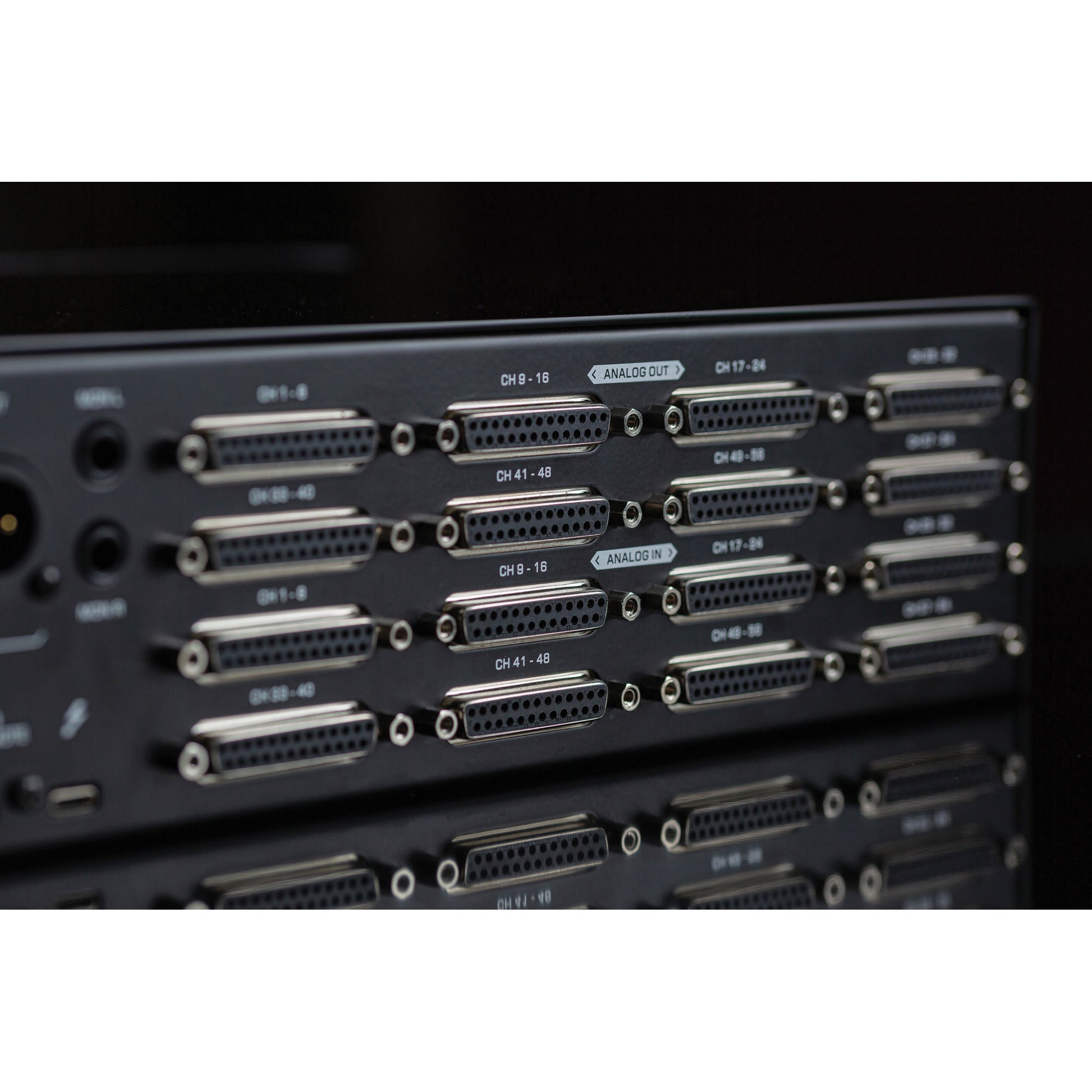 - 64 analog output channels over 8 DC-coupled D-Sub 25 connectors (TASCAM standard);