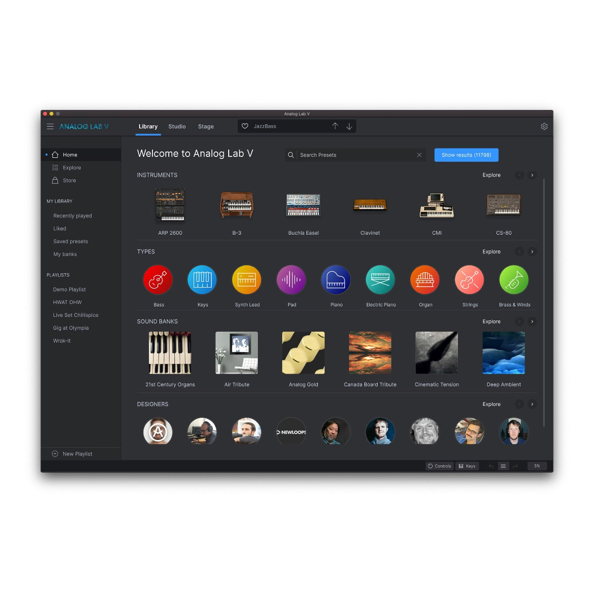 - Analog Lab V - all presets of the V Collection 8 can be browsed and edited from a single interface