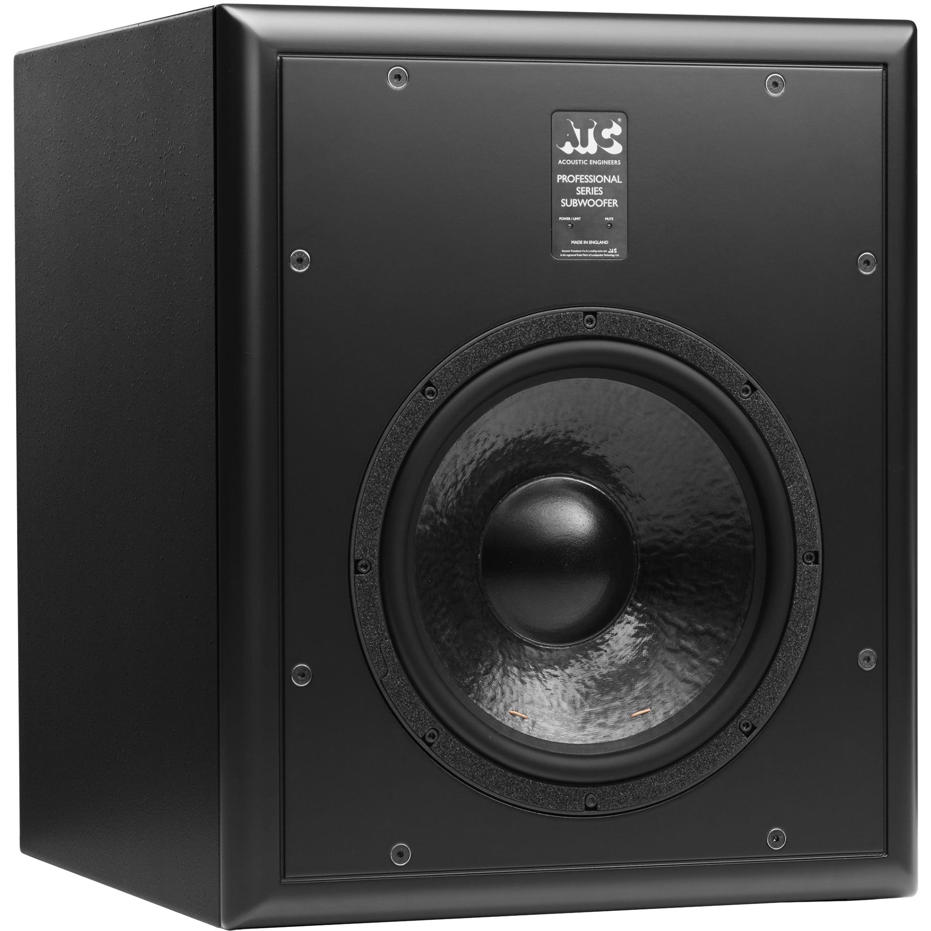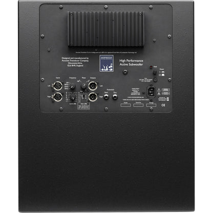 The sub features a sealed-box (infinite baffle) design, chosen for its balance of sub-bass extension anddriver control. The cabinet is heavy and inertto minimize cabinet coloration. The subwoofer cabinet features a panel mounted in its front face with two LEDs to indicate ‘on’/’limit’ and ‘mute’.