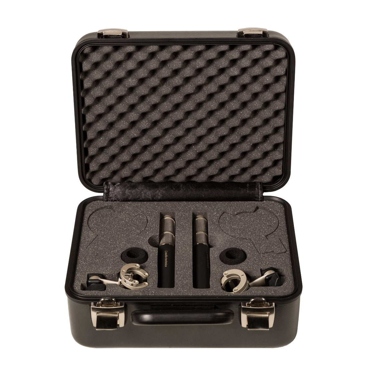 - Custom hard-shell carrying case with die-cut foam compartments offers protection for one or two microphones