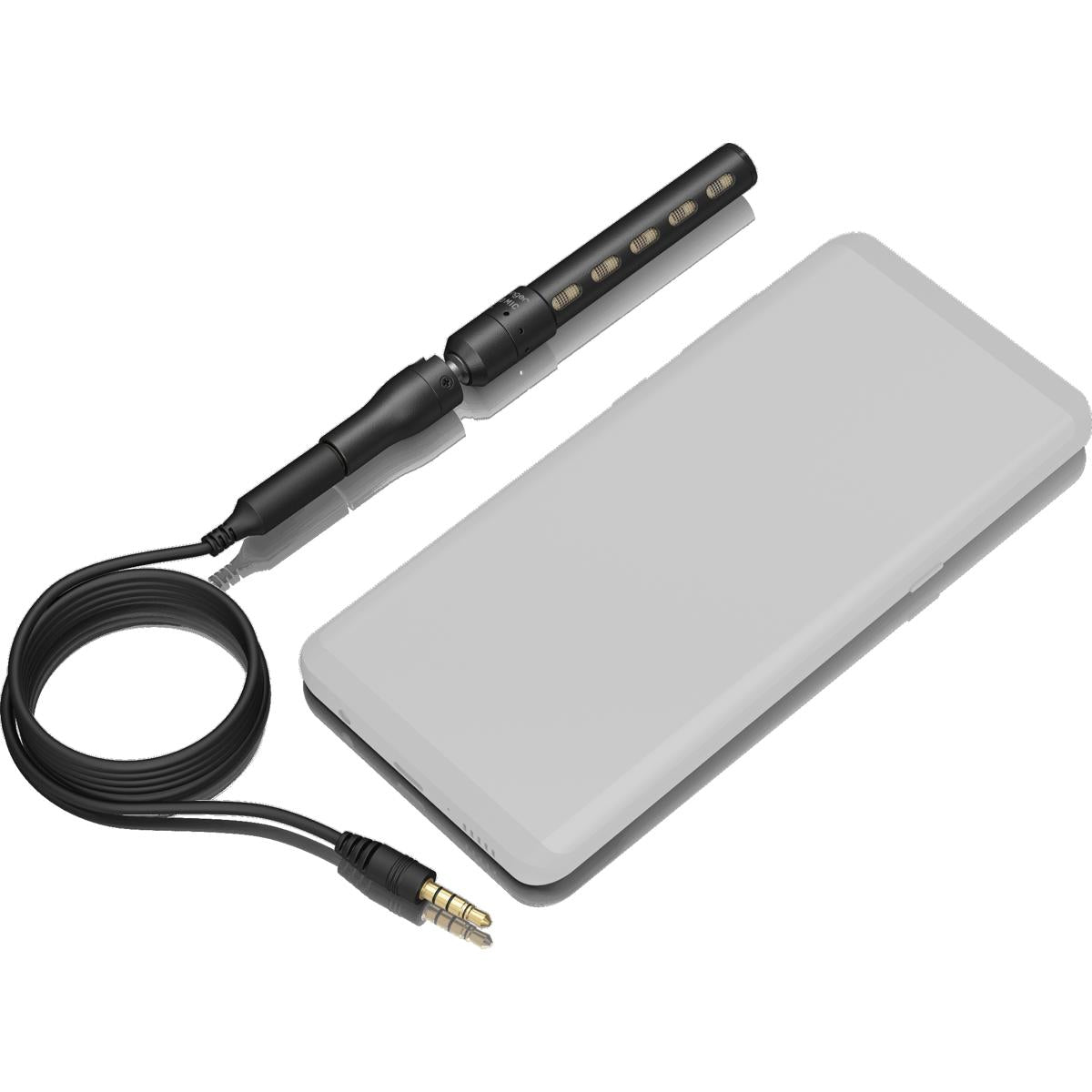 - Extension cable for smartphones, foam windscreen and protective carrying pouch included