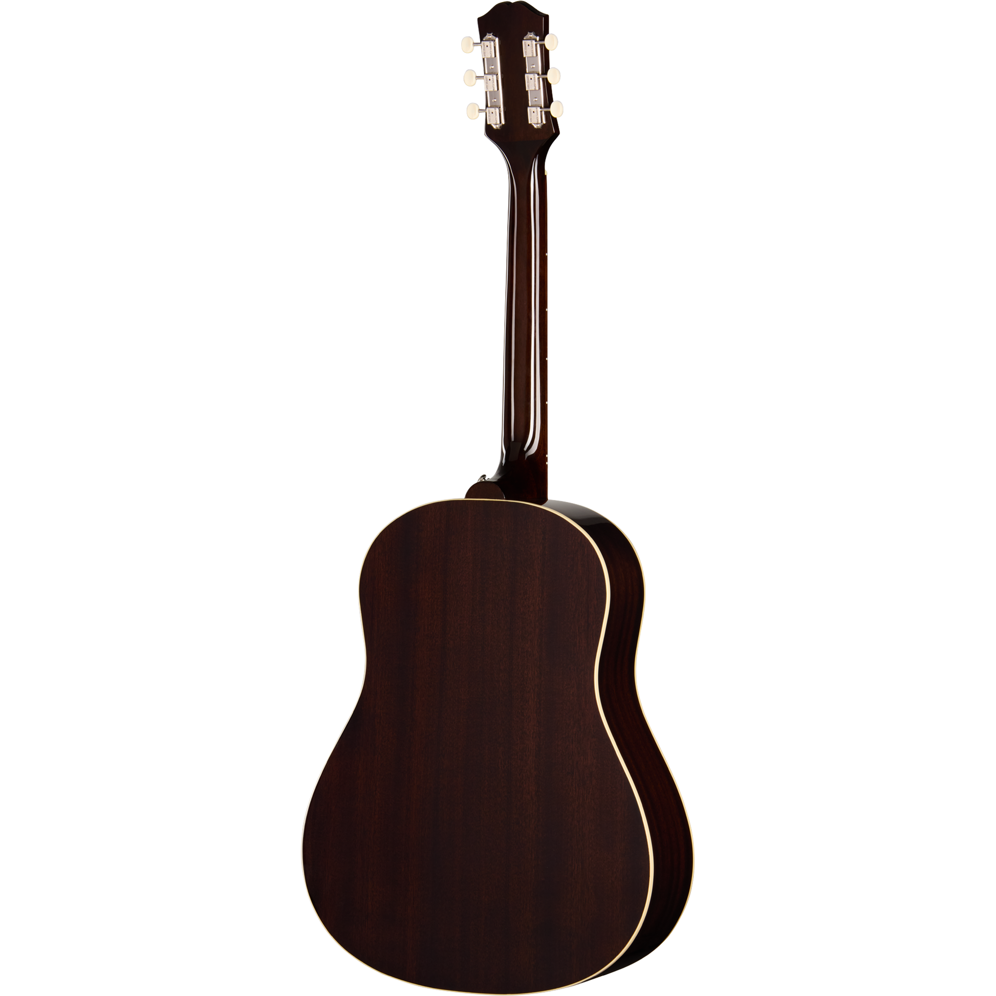 Other details that give the J-45 Studio even more vintage-style visual appeal are also included, such as a teardrop-shaped dark tortoise shell-colored pickguard, three-on-a-plate tuners with ivory-colored plastic buttons, and a 60s Kalamazoo-style headstock with the Epiphone logo proudly displayed in gold silkscreen. The J-45 Studio comes with Fishman electronics, including an S-Core under-saddle pickup and Fishman Presys VT preamp with soundhole-mounted volume and tone controls that are fast and easy to access for the player while remaining nearly invisible to the audience. A standard gig bag is also included.