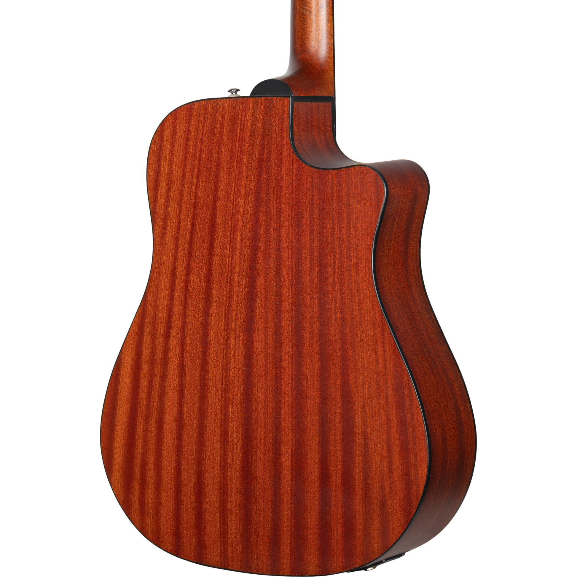 The left-handed CD-100CE cutaway dreadnought model delivers great playability, sound and looks. Features include a spruce top, mahogany back and sides, scalloped bracing, 20-fret rosewood fingerboard, rosewood bridge with compensated saddle, chrome die-cast tuners, satin polyurethane finish and Fishman® preamp system.