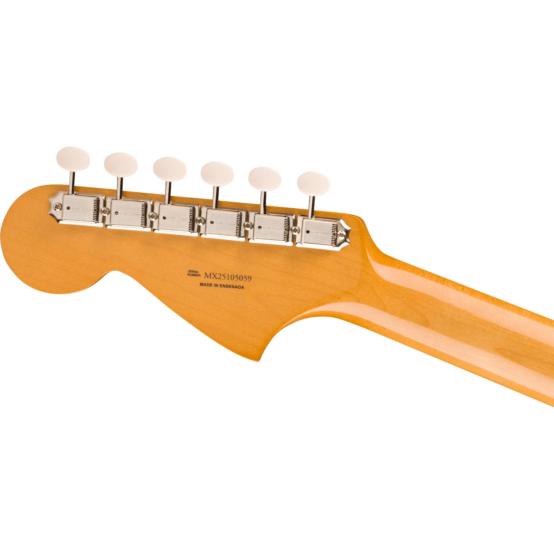 The Vintera® III Mid 60s Mustang® features an alder body and maple neck with rosewood fingerboard for classic Fender tone brimming with punch and crystal-clear articulation. The authentic mid '60s “C”-shaped neck profile offers an instantly familiar playing experience that feels natural in your hands, while the 7.25" radius fingerboard with vintage-tall frets ensures supreme comfort and outstanding feel. At its heart, you’ll find a pair of vintage-style mid '60s single-coil pickups that deliver all the sweet and sparkling, warm and woody tone that made Fender famous. The vintage-style Mustang® "floating" tremolo provides effortless pitch manipulation, while period-correct vintage-style tuning machines deliver authentic looks with superior tuning precision.