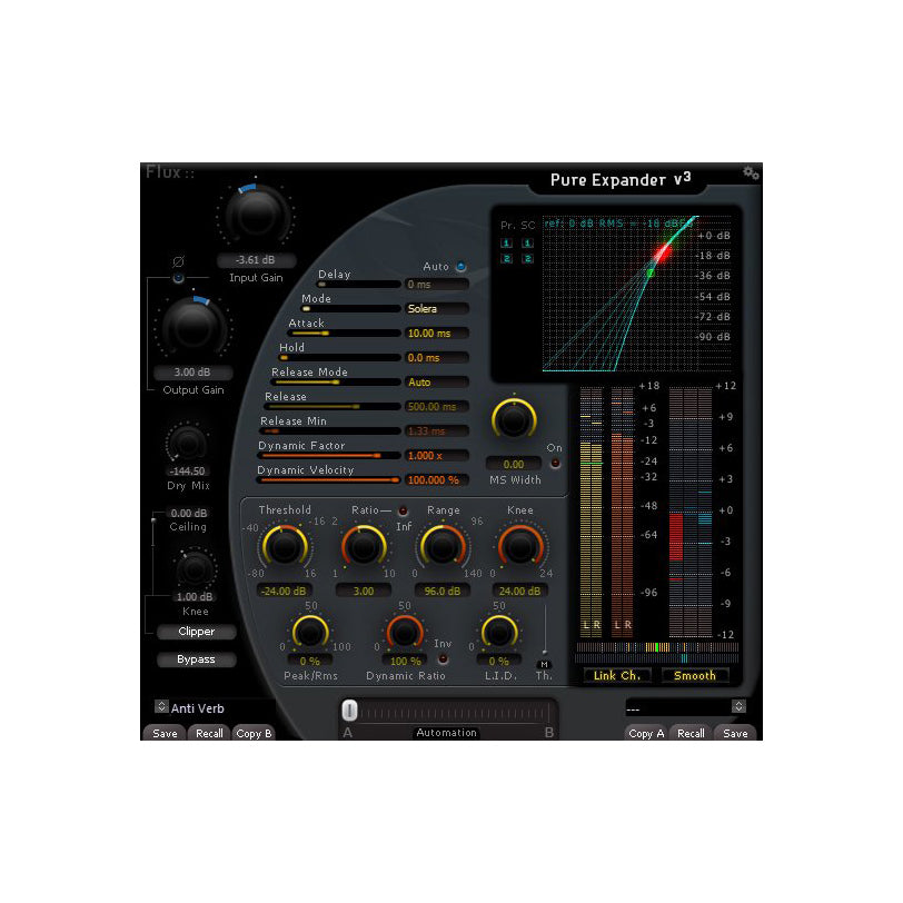 Pure Expander provides parameters are provided that are unique in dynamics processing; Dynamics Ratio and Level Independent Detection (L.I.D), using the dynamic range content of the signal and not just the signal levels as standard processors do.