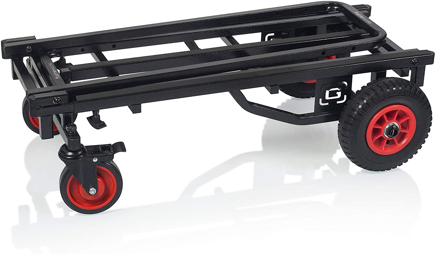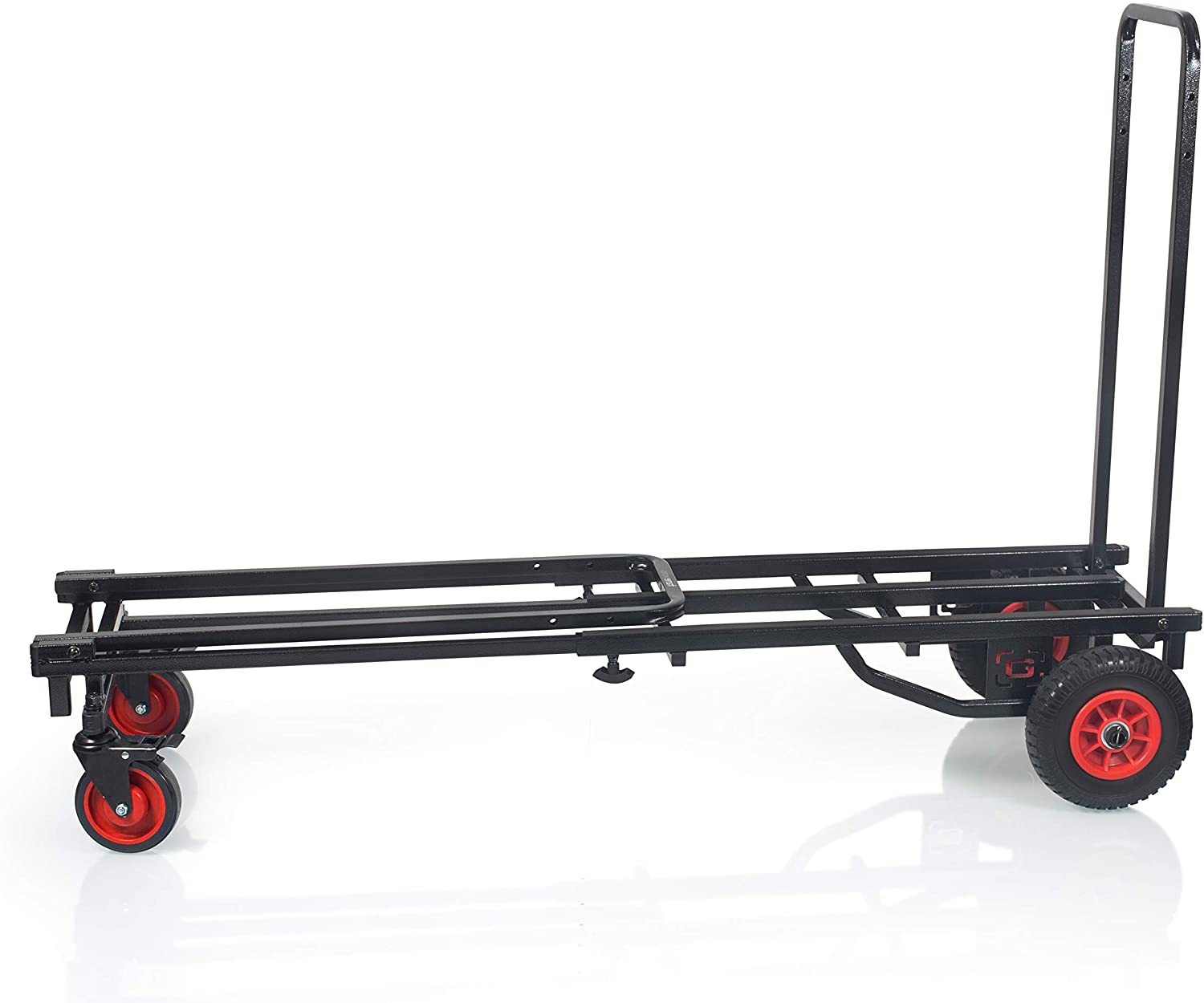 Transport your gear safely in one trip with the all-terrain utility cart by Gator Frameworks. This cart hauls your gear to its destination without any hassle. Constructed of a rugged, welded steel frame, the cart is ready to bear the abuse of multiple trips with a maximum load capacity of 500 lbs. The GFW-UTL-CART52 comes loaded with no-flutter locking swivel casters specially designed to counteract cart wobble and prevent any unwanted noise. Easily engage the Caster locks to prevent your cargo from rolling away during loading and unloading. By stepping down on the bottom release latches to fold down both side handles the cart easily adapts to a variety of needs, ranging from music gigs to corporate events with its eight different configurations: Compact Dual-Handle, Extended Dual-Handle, Compact Single-Handle, Extended Single-Handle, Compact Collapsed, Extended Collapsed, Compact Upright, and Extended Upright.