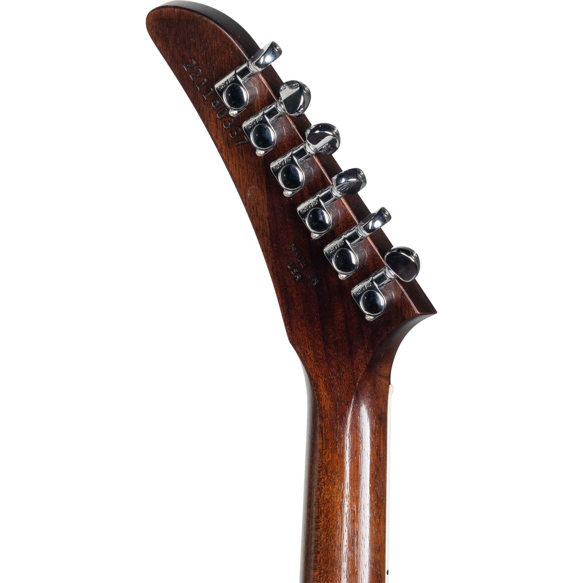 The new Gibson Victory was created in response to player requests for the return of this 80s-era cult favorite. Crafted for limitless self-expression, it carries the DNA of the original versions with enhanced features such as refined body contours, improved weight and balance, and an Explorer™ headstock. The Victory has a 25.5” scale length, and the mahogany neck has an ebony fretboard with a compound radius for enhanced playability, a SlimTaper™ profile, and 24 medium jumbo frets. The mahogany body has a Tune-O-Matic™ bridge and Stop Bar tailpiece and a satin nitrocellulose lacquer finish. The highly flexible electronics include two 80s Tribute humbucker™ pickups wired to push/pull master volume and tone controls for coil splitting and inner/outer coil selection when the coils are split, which, along with the three-way pickup selector switch, deliver a wide range of humbucking and single coil tonal options with a minimum number of controls.