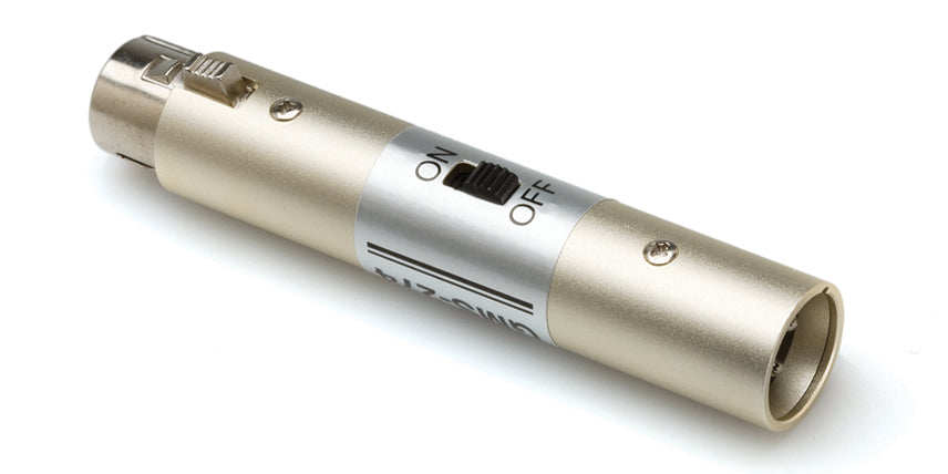 This adaptor is designed to add a power switch to a dynamic microphone. It is ideal for karaoke, public speaking, and other events during which a single microphone is shared.
