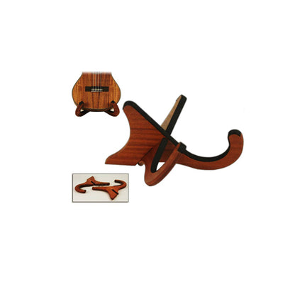 Do you own and love a beautiful Ukulele? Designed by an artist/musician, this stand is a more inexpensive version of our high end, solid wood stands. It is crafted of Mahogany veneer with padded, foam inlay and engineered to safely hold any standard size, commonly shaped ukulele, and look awesome while doing it. Easy, one step assembly. Simple One step Slotted assembly. No tools required. Simply slide slotted pieces together. Mahogany Veneer. Soft foam edge to protect the finish on your Ukulele Fits Soprano, Concert, Tenor, and Baritone Size Ukulele