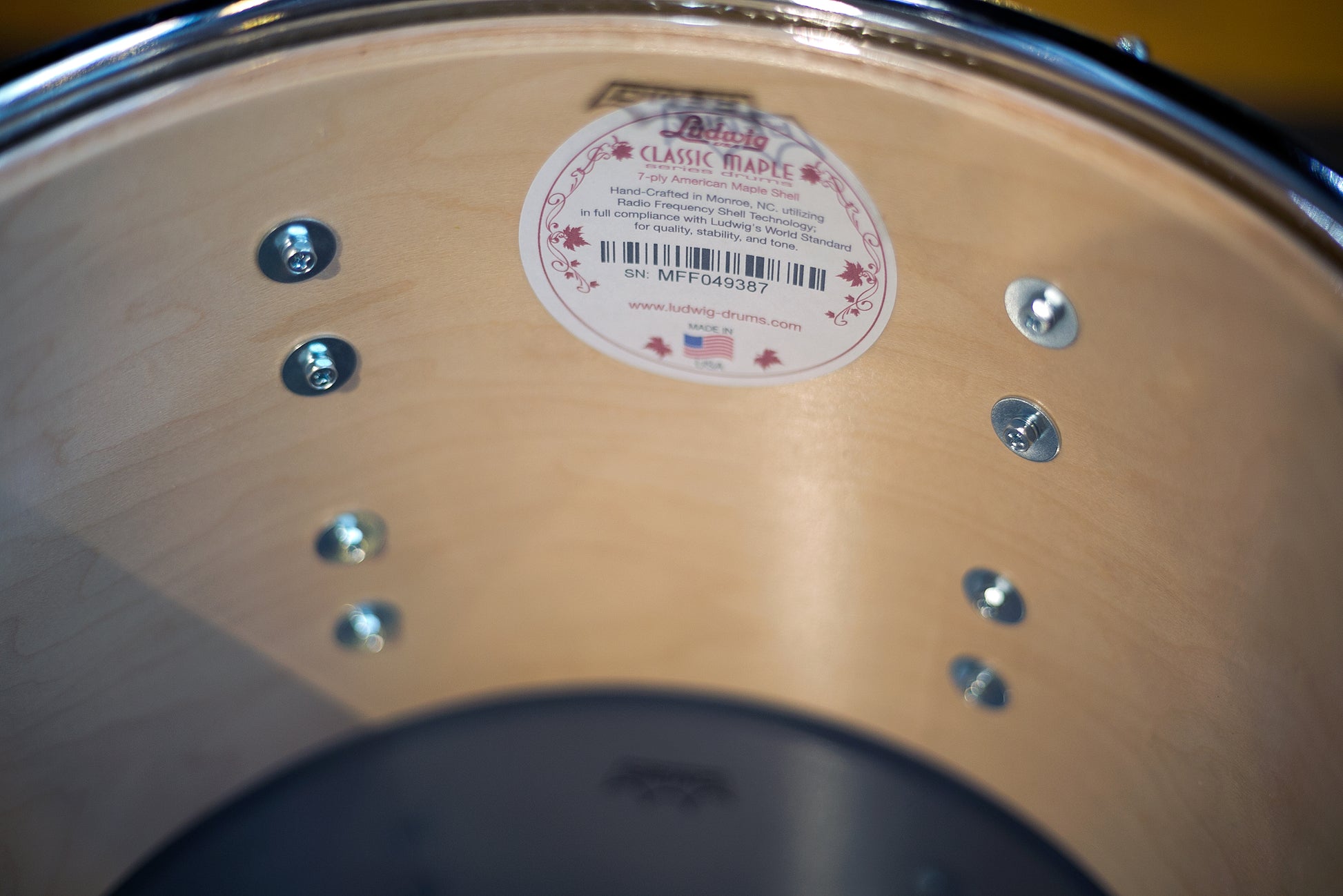 Each drum's bearing edge is cut to a 45-degree angle within 1/16" from the outside edge. This sharp edge is hand-sanded to the craftsman's touch to assure a smooth, even, flat surface for easy head seating; the final touch to complete the unmistakable Ludwig Sound.