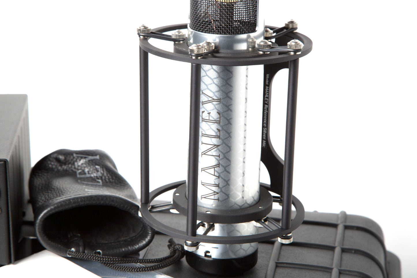 Our proprietary precision suspension system is provided with each Reference Microphone (the capsule itself is mounted onto a rubber shock-mount.) Because the entire working "guts" of the microphone may be removed for service in one piece from the housing, it is envisioned that the microphone need not be removed from the suspension. We also provide a very useful swivel of our own design with every REFERENCE MICROPHONE; its T-bar handle and locking clutch action require no tools to adjust. And no MANLEY microphone would be complete without a genuine leather capsule protector which slips (and ties) onto the end of the microphone to protect the capsule when not in use.