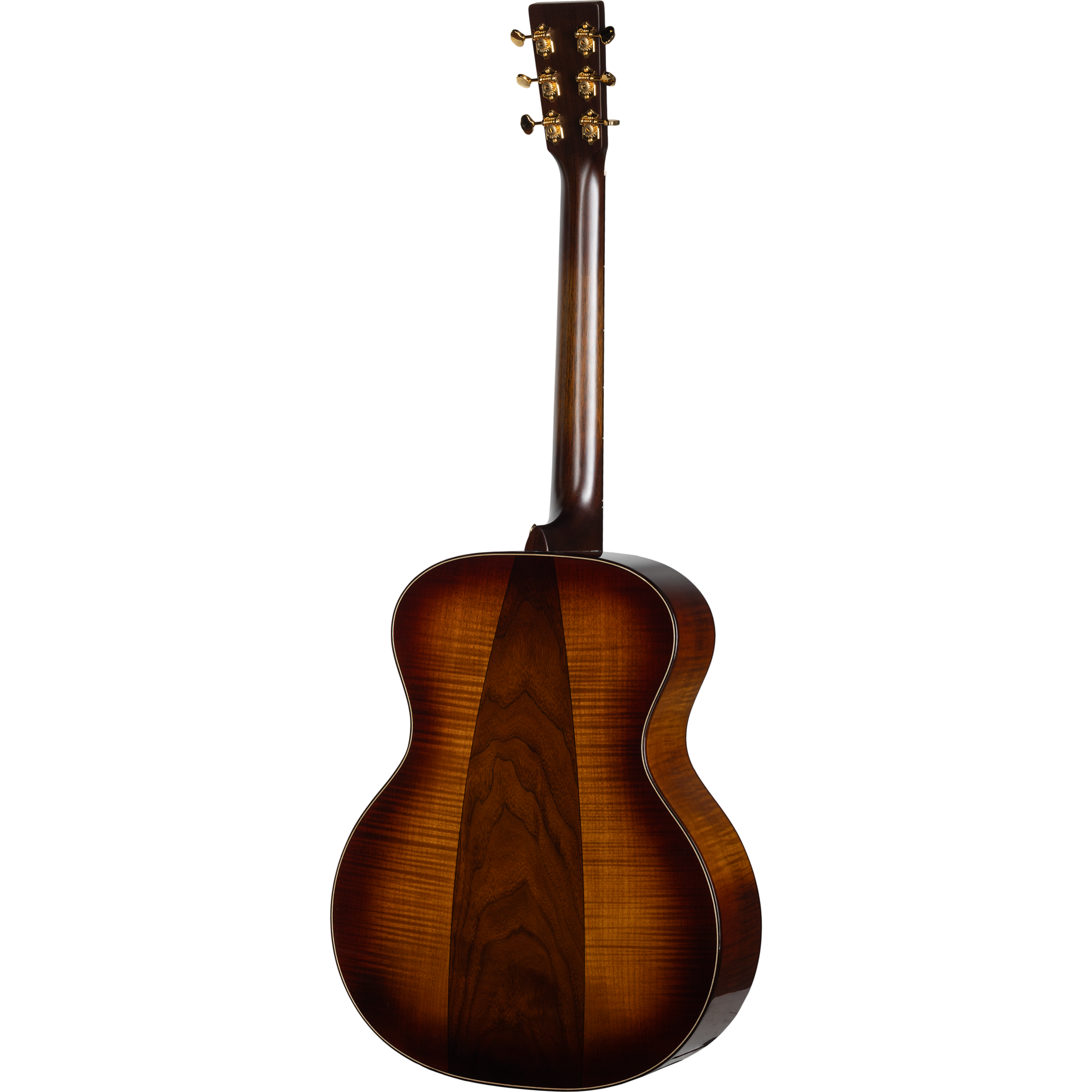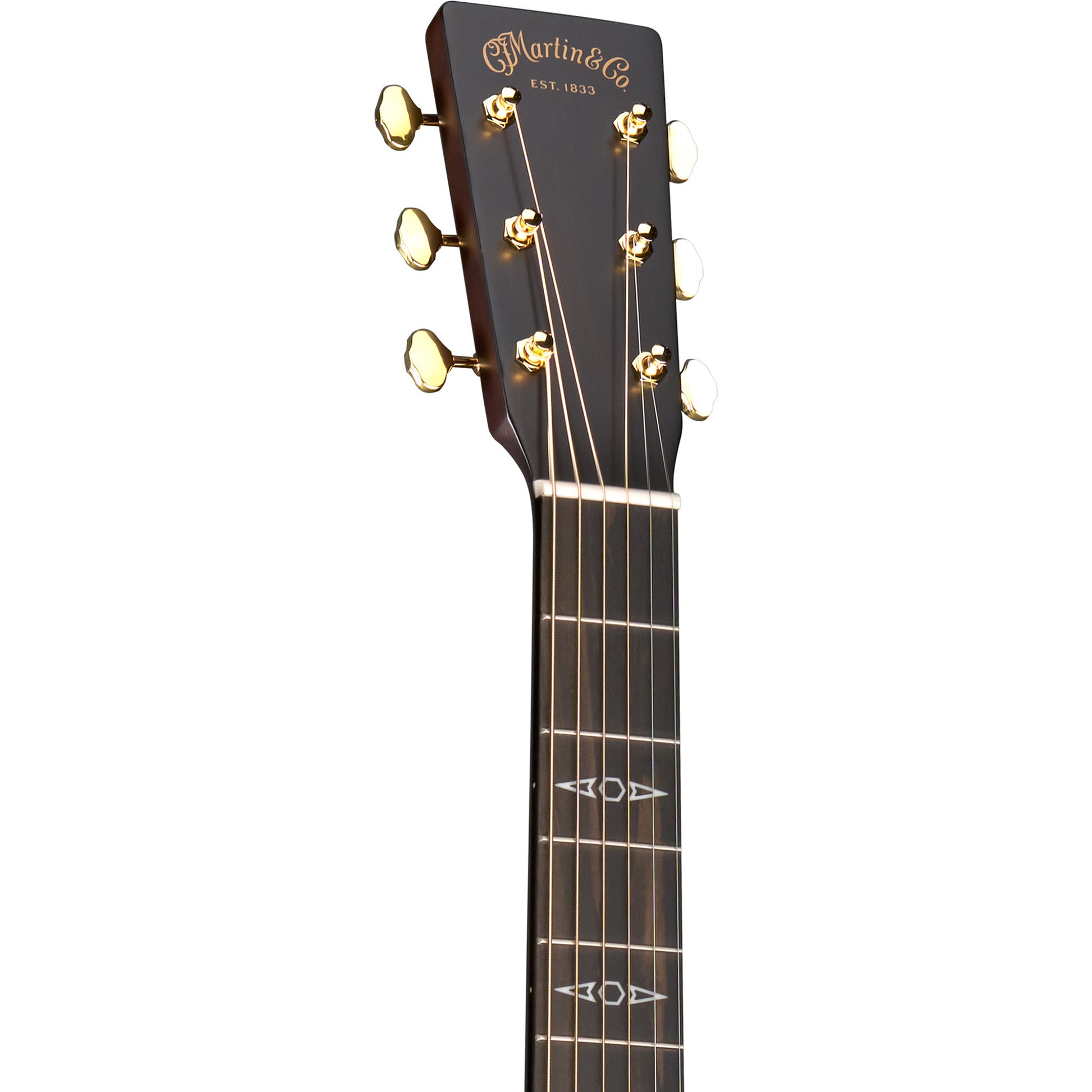 Martin is once again unlocking the sonic beauty of sustainable tonewoods with the GPE Inception™ Maple, introducing a non-cutaway Grand Performance shape to the series. This acoustic-electric blends cutting-edge innovation with domestic and certified materials, delivering a tone as dynamic as its bold new look. The FSC®-certified European spruce top, gleaming in a gloss amber fade sunburst, provides quick response and powerful projection, while the flamed maple back and sides, accented by a black walnut wedge, add striking visual depth and a bright, articulate sound with just the right touch of warmth. Martin’s skeletonized bracing and sonic channeling technology, purpose-built for these specific tonewoods, optimize response and reduce mass, increasing both sustain and amplitude—a rare feat in acoustic guitar design. The sleek black walnut neck, finished in a satin amber fade sunburst, pairs with an FSC-certified ebony fingerboard and bridge, a new addition that enhances both playability and tonal depth. Topped off with LR Baggs Anthem electronics, gold open-gear tuners, and refined black walnut binding, the GPE Inception Maple is where nature and technology meet in perfect harmony.