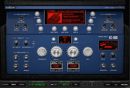 The EC-300 Echo Collection brings the sounds of dozens of echo and chorus effects into a single plug-in. The three delay types – Magnetic, Digital, and Analog – come with a generous collection of user controls, plenty of character modes, highly stylized visual feedback, and McDSP’s nearly two decades of gear modeling experience.