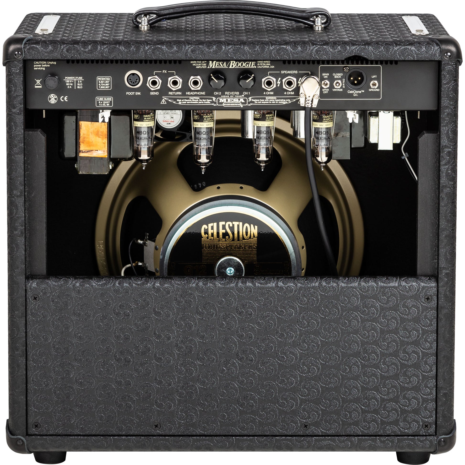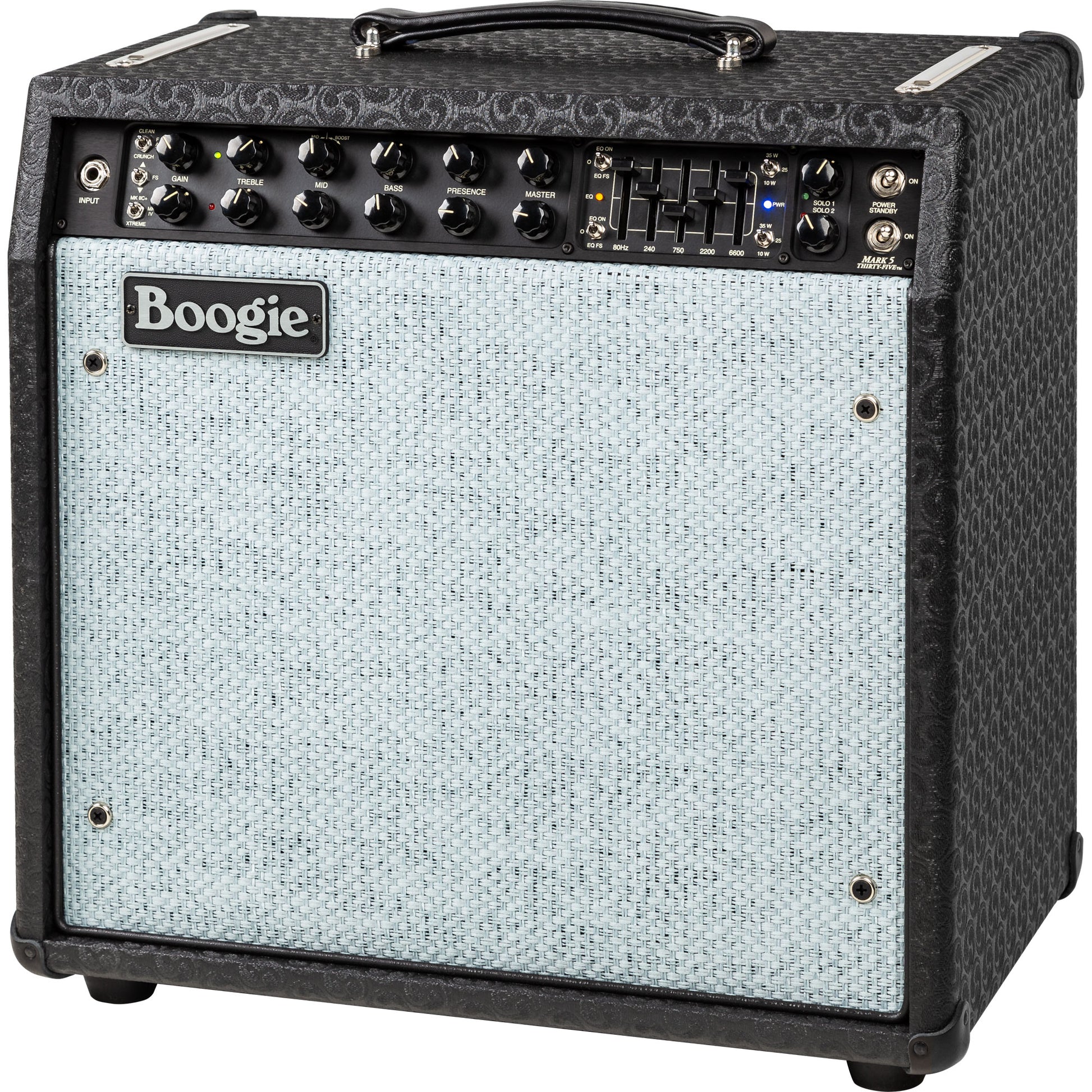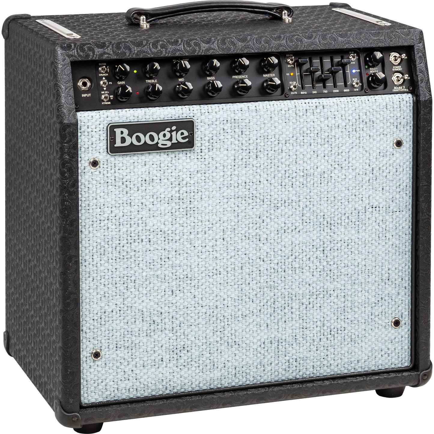 To round out the two-Channel, six Mode preamp and lightweight but mighty sounding power section, the MARK FIVE: 35 is available as both a 19” traditional “Boogie® size” Head and a portable 1x12 Combo. The Head can sit atop a number of MESA® Extension cabinets and the Combo can be coupled with an additional Extension as well for greater coverage. And to further enhance your enjoyment of either of these formats, a wide range of covering options may be chosen from our custom vinyl and leathers as well as exotic hardwood cabinetry.
