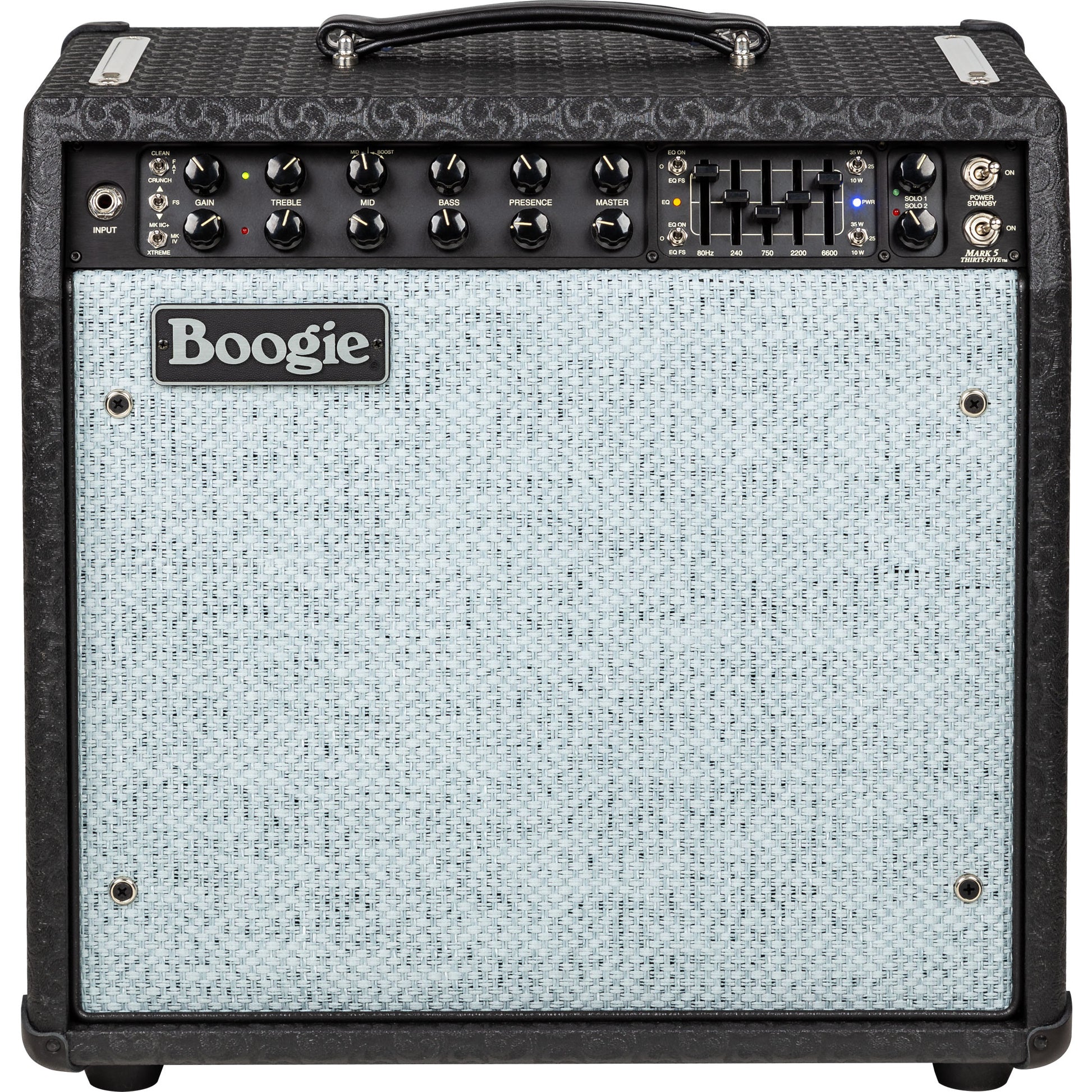 The MARK FIVE: 35, like the MARK FIVE™ it’s born from, is really a collection of iconic amplifiers. It’s a living history of MESA/Boogie! Channel 1 covers the entire gain spectrum from chiming tight clean sounds, through furry, edge-of-clip, to Classic Rock CRUNCH and all the way up to burning saturated Lead sounds. Channel 2 delivers the legendary MARK II-C+ and warmer, rounder MARK IV in all their glory and the XTREME Mode from the MARK FIVE.