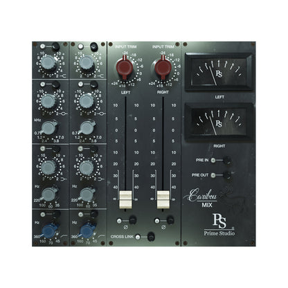 Prime Studio Caribou Mix offers the character of a rare vintage three band stereo equalizer with low cut filter and phase reverse. In addition to the equalizer function, the channel faders and the preamps can also be colored in different ways.