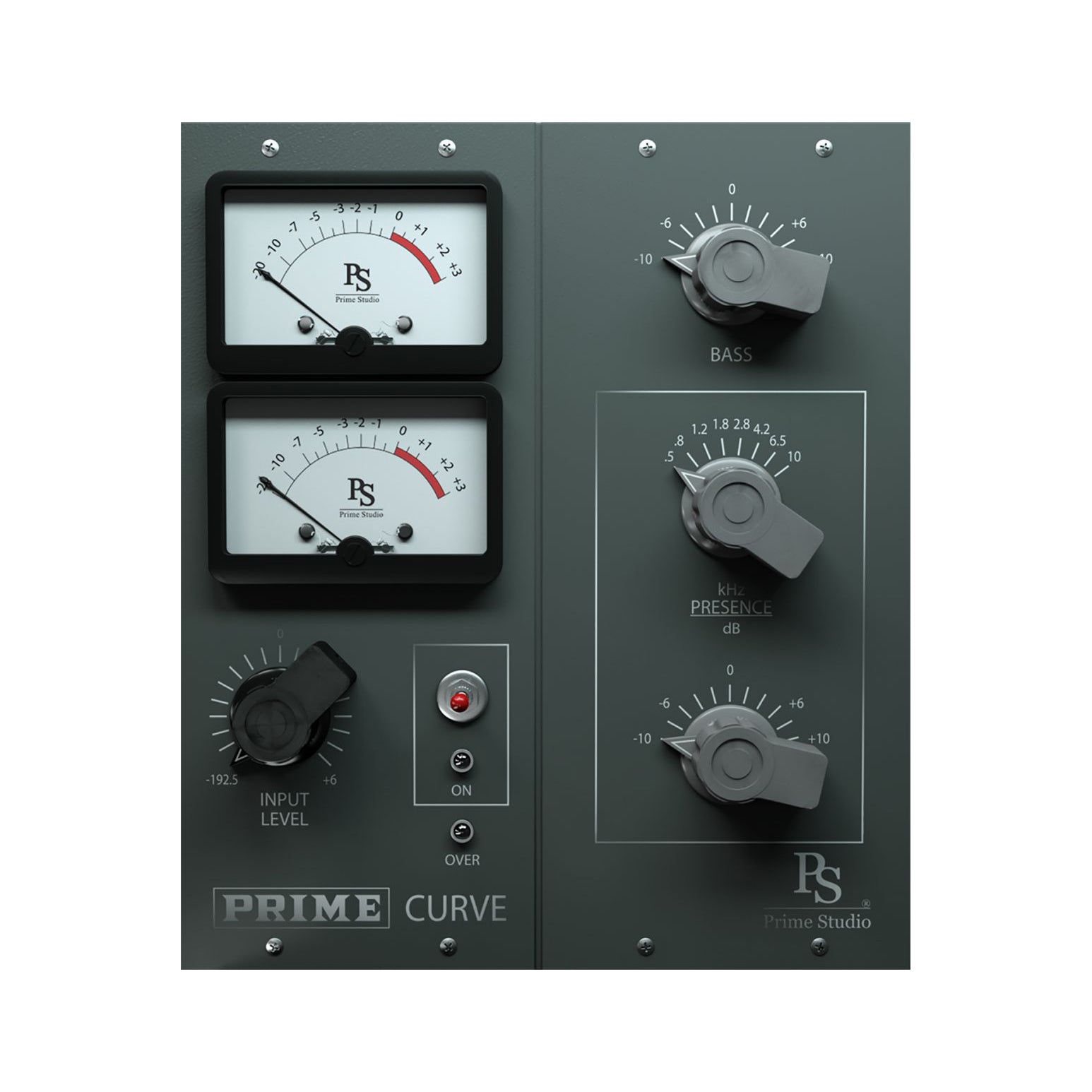 The Prime Studio Curve is the equalizer of a console channelstrip with bass and treble control with musical frequencies of 500, 800, 1200, 1800, 2800, 4200, 6500, 10000Hz. Prime Studio® Curve provides additional filtering flexibility and adds pleasant overtones to your sound.