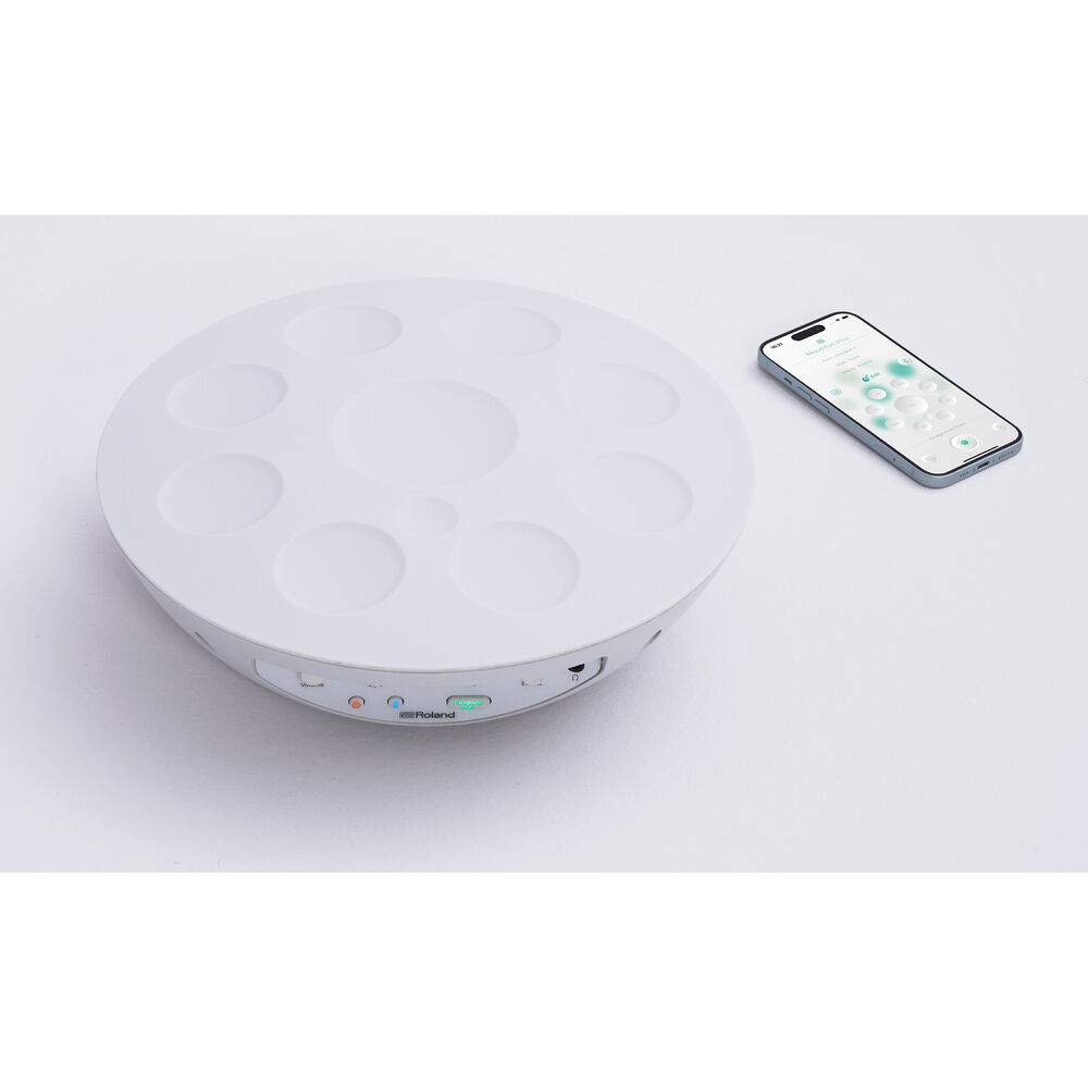 Mood Pan is made for mindful creators and modern musicians seeking a versatile and expressive new instrument. It blends the soulful resonance of acoustic handpans with multiple sound variations and other flexible features made possible with Roland’s advanced percussion technology. While many musical instruments require learning and skill development, Mood Pan can be enjoyed by everyone, with no experience or special technique necessary.