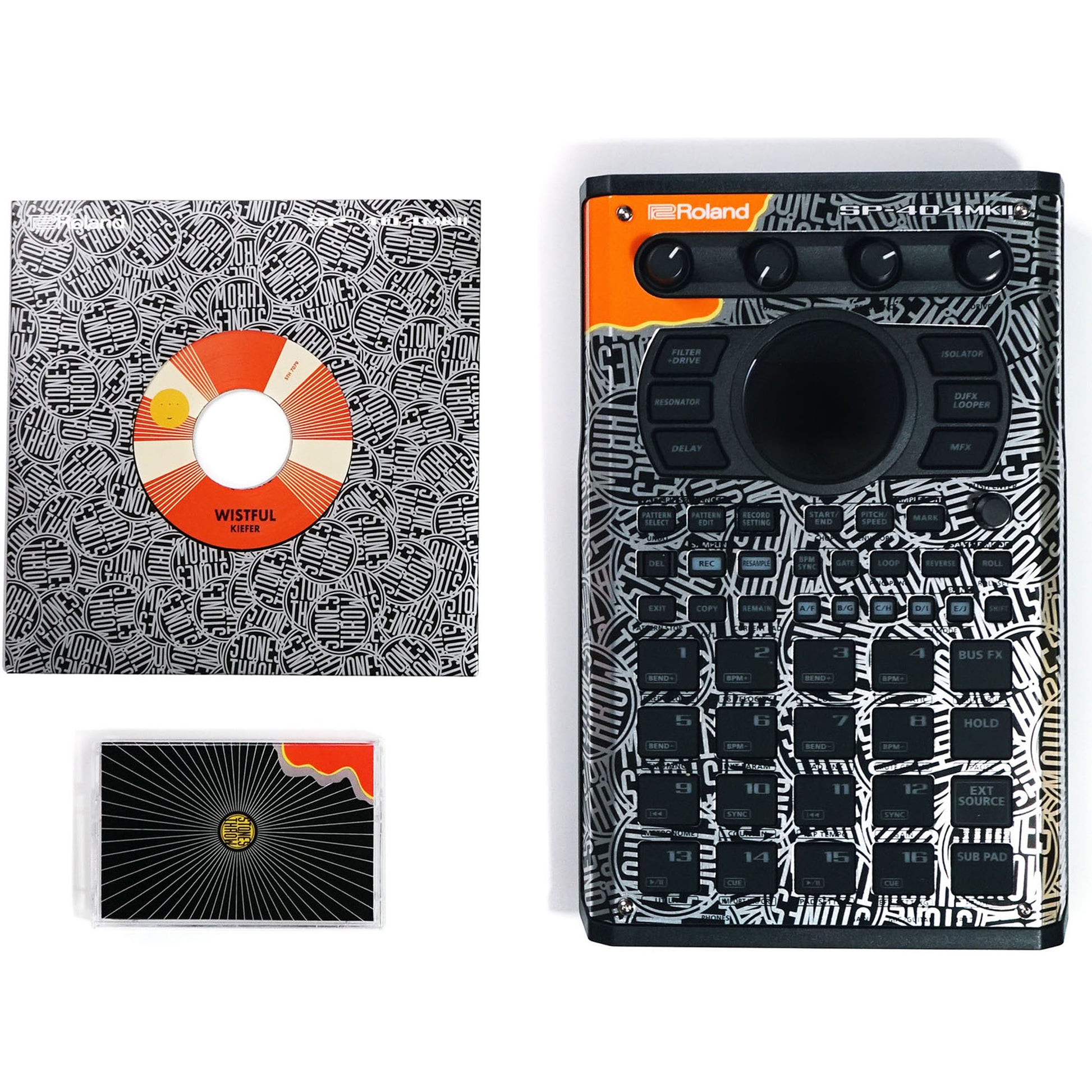 Commemorating this powerhouse partnership, the SP-404MKII Stones Throw Limited Edition contains additional content you can’t get anywhere else. There’s a 7-inch vinyl record with two certified burners from Kiefer and Mndsgn, constructed using their custom SP sound banks. You also get a cassette mixtape by DJ icon J.Rocc with an exclusive 30-minute mix from the SP-404MKII x Stones Throw artists.