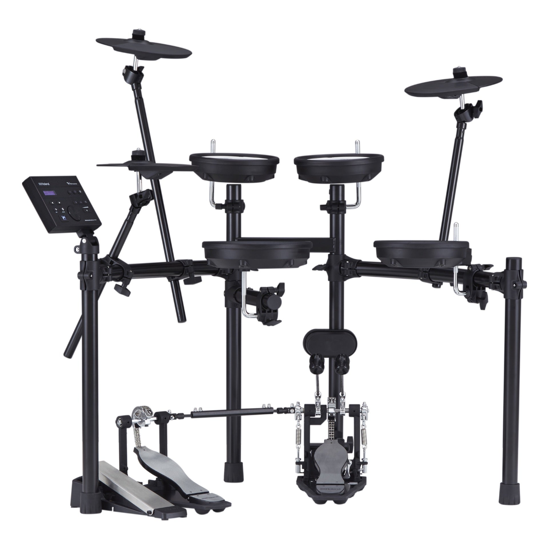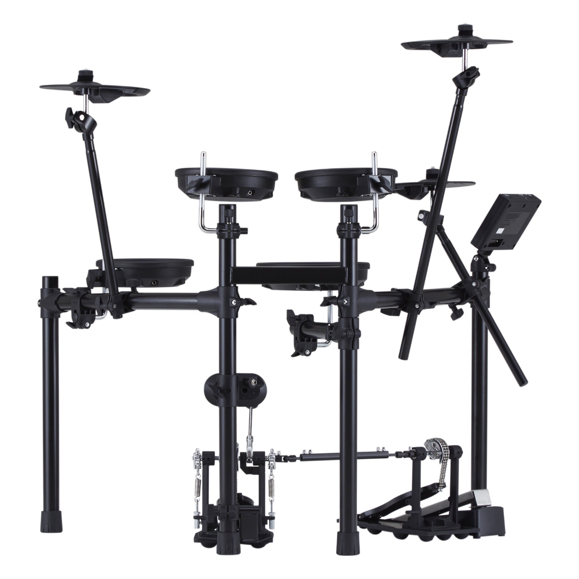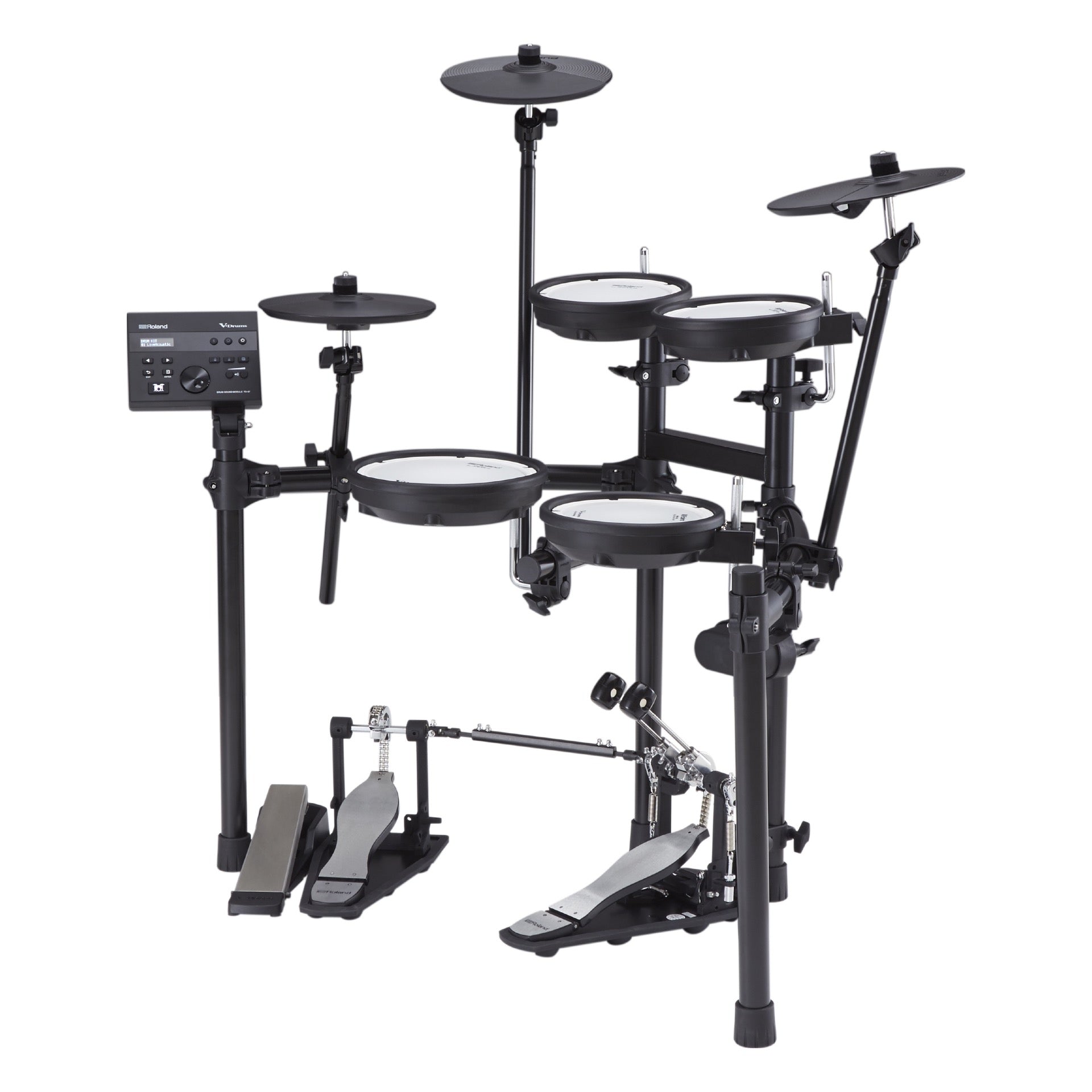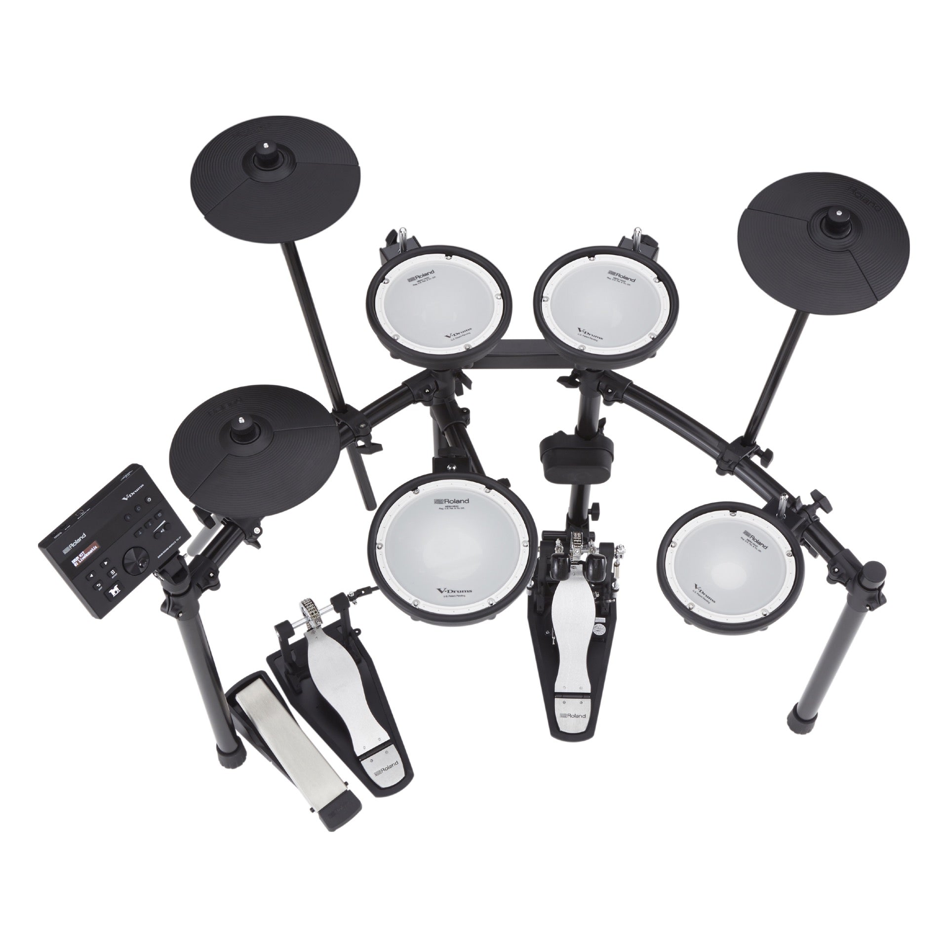 - Snare and tom pads with Roland’s legendary double-ply, tension-adjustable mesh drumheads