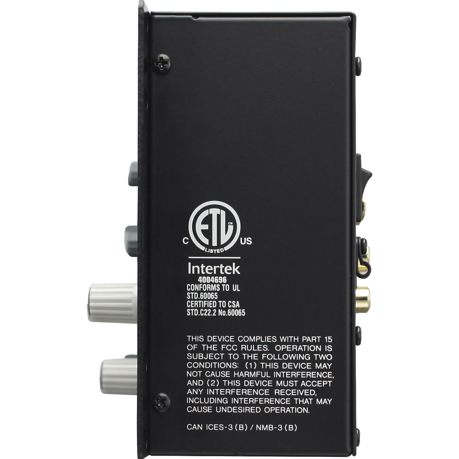 - Channel audio sources can easily be selected, muted, and contoured via simple volume sliders, toggle switches/buttons, and knobs