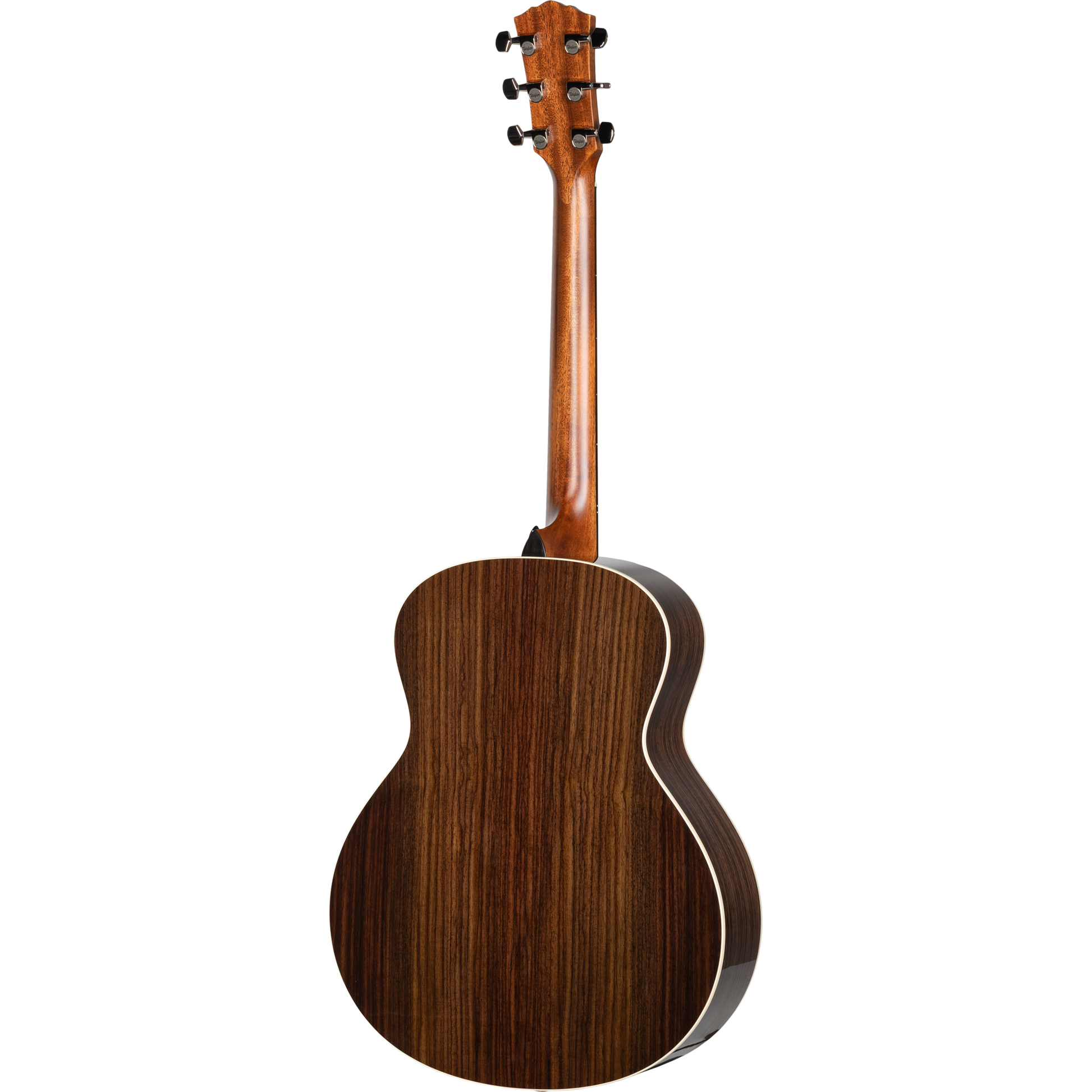 With its golden-brown sunburst top and heritage-inspired design, the Gold Label 714e SB offers a rich blend of bold visuals and expressive acoustic tone. Solid Indian rosewood back and sides are paired with a torrefied Sitka spruce top in a Super Auditorium body, which is slightly longer and has a wider lower bout than Taylor's signature Grand Auditorium. This model serves up an open, expansive sound marked by deep lows, rich trebles, blooming overtones and played-in character right out of the box. Fanned V-Class™ bracing contributes to an exceptionally warm, resonant, powerful sound. A slender long-tenon Action Control Neck™ provides a hand-friendly playing experience while enabling on-the-fly string-height adjustments. Design elements exclusive to the Gold Label Collection include a distinctive pickguard shape and a modified headstock with an angled-back cut and script-style Taylor logo. Visual details include a Honduran rosewood Curve Wing bridge with Indian rosewood bridge pins, along with a firestripe pickguard, cream-colored rosette, binding and matching Crest fretboard inlays—all set against a full-body gloss finish. Outfitted with LR Baggs Element VTC electronics and Taylor nickel tuners, the Gold Label 714e SB ships in a Taylor deluxe hardshell case with a British Cocoa exterior.