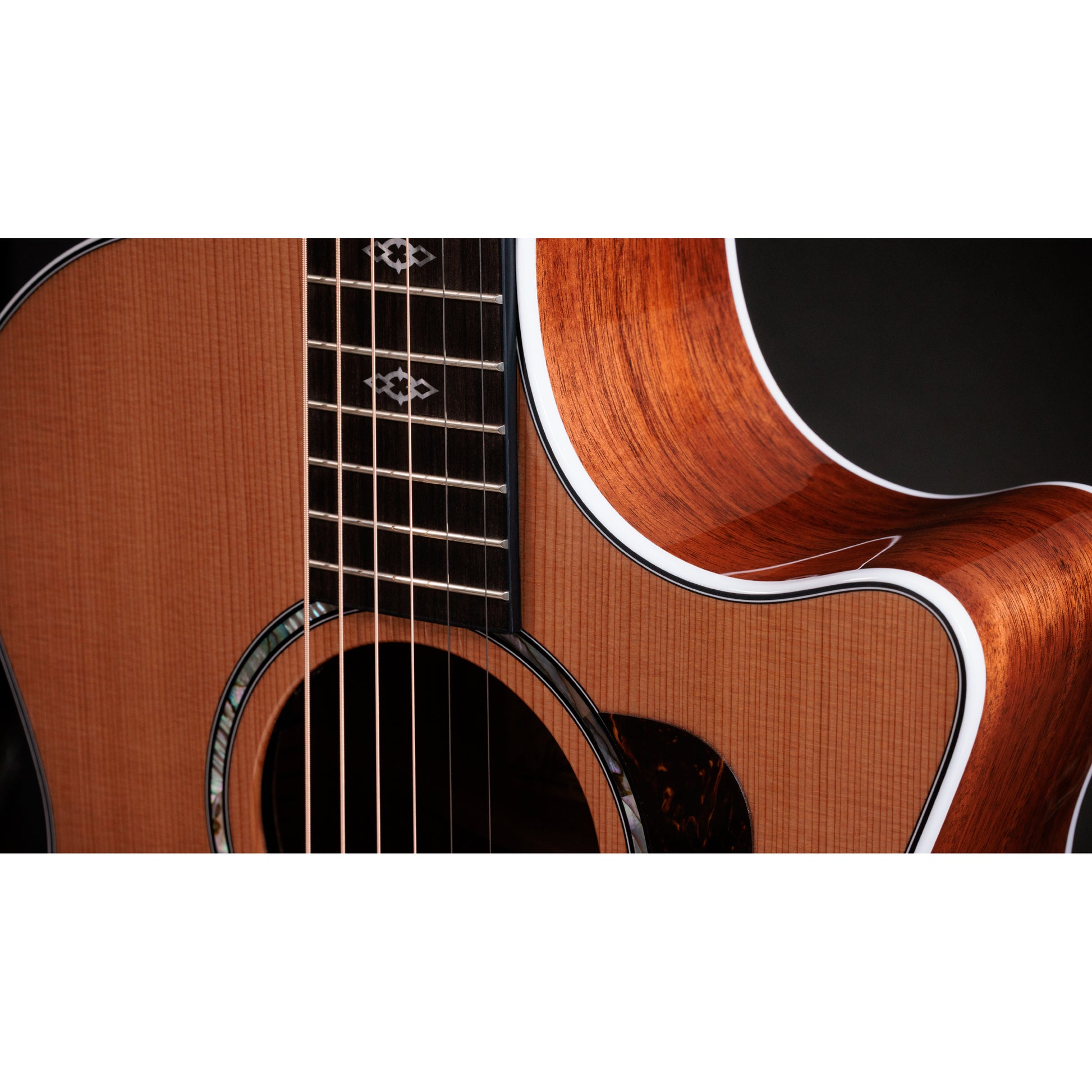 Newly revitalized with Next-Gen features, the 514ce delivers an exceptional playing experience at the intersection of comfort, tone and musical utility. Mahogany back and sides paired with a top of Western Red cedar serve up a focused midrange response with warm, rounded character and remarkable soft-touch sensitivity, making it an ideal choice for a broad range of playing styles. Inside, a scalloped V-Class bracing enhances volume, sustain and open-string expressiveness, combining with an Action Control Neck that generates a touch of additional low-end presence while also offering easy, quick string height adjustments. Visual details include a natural full-body gloss finish, Meridian fretboard inlays in Italian acrylic, a green abalone rosette, and a faux-tortoiseshell pickguard. It includes Claria electronics for dependable live sound in any venue and ships with a deluxe hardshell case.
