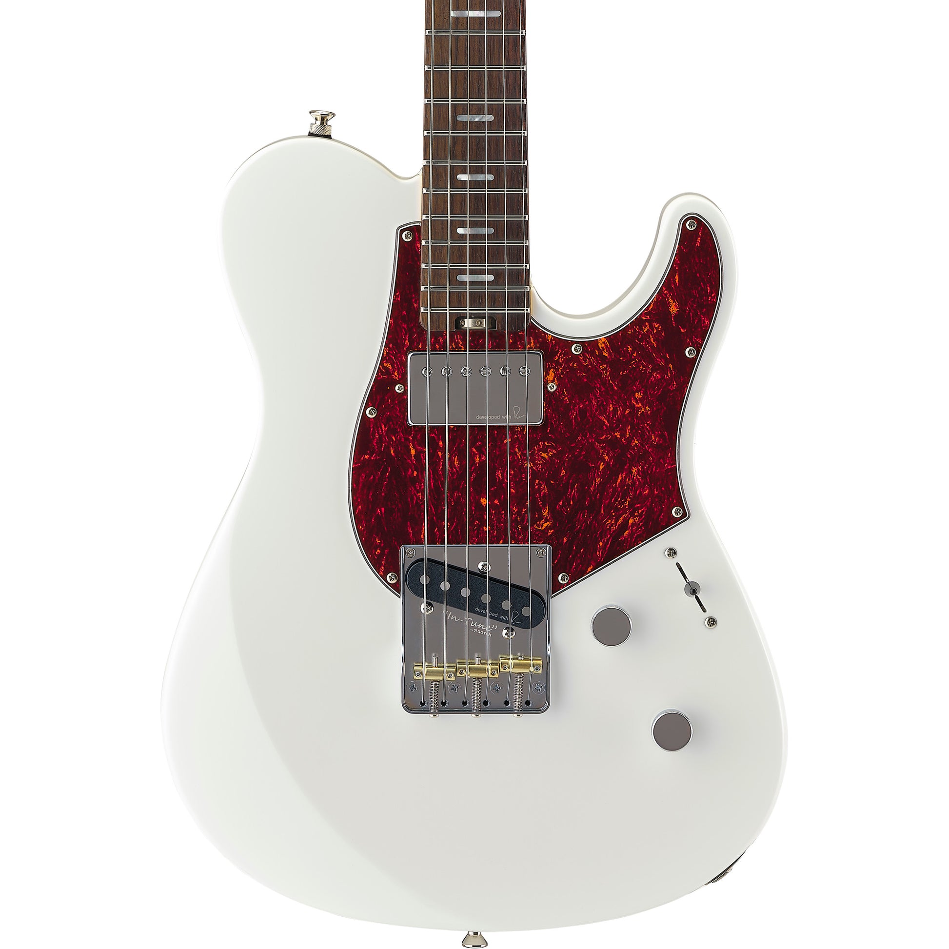 Outfitted with ultra-sensitive “Reflectone” pickups, co-developed by Yamaha with Rupert Neve Designs, capable of outstanding focus both clean and wildly overdriven. Configured with a T-style player favorite neck-position Humbucker and a staggered-pole single in the bridge position, tuned for uniform output. The pickups are controlled by a three-way blade and a passive push-pull tone potentiometer, providing classic twang and brightness or a growling, midrange-forward character.